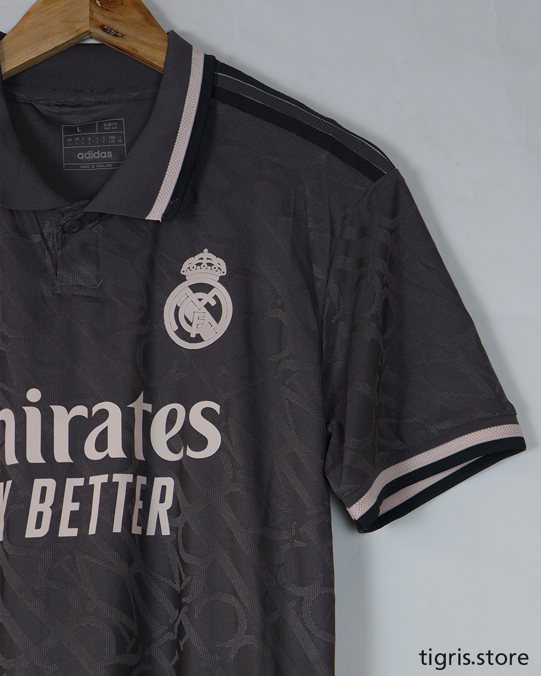 نسخة لاعب تيشرت نادي ريال مدريد الرصاصي 24/25 شعار جلاتيني فقط تيشرت صناعة تايلندية