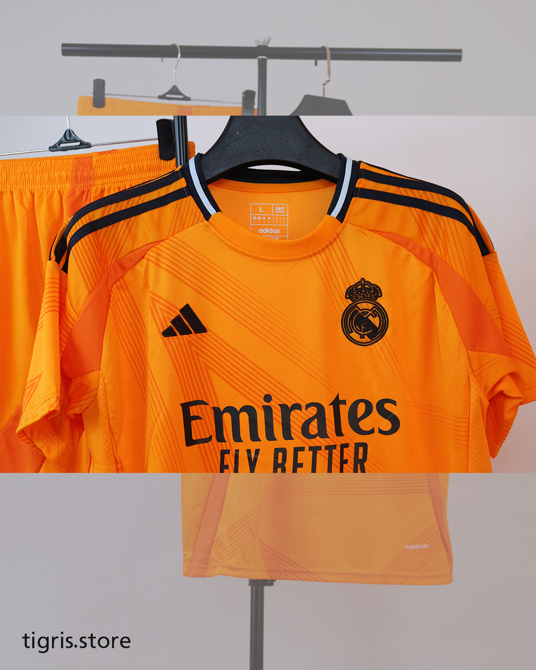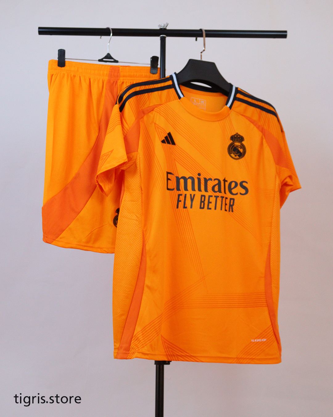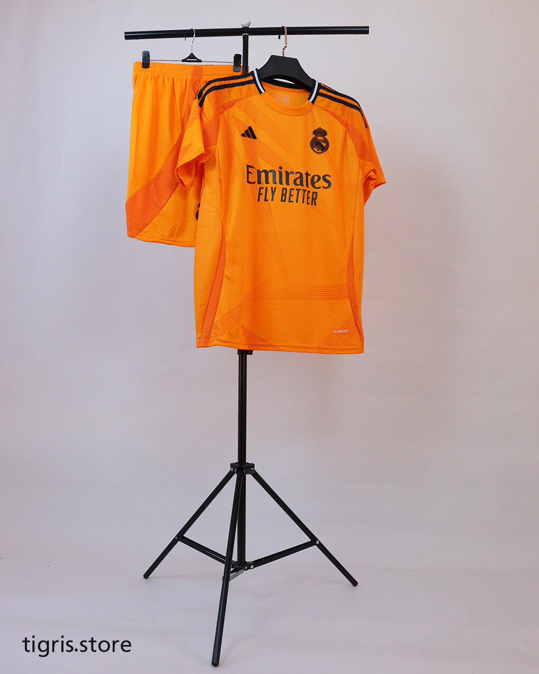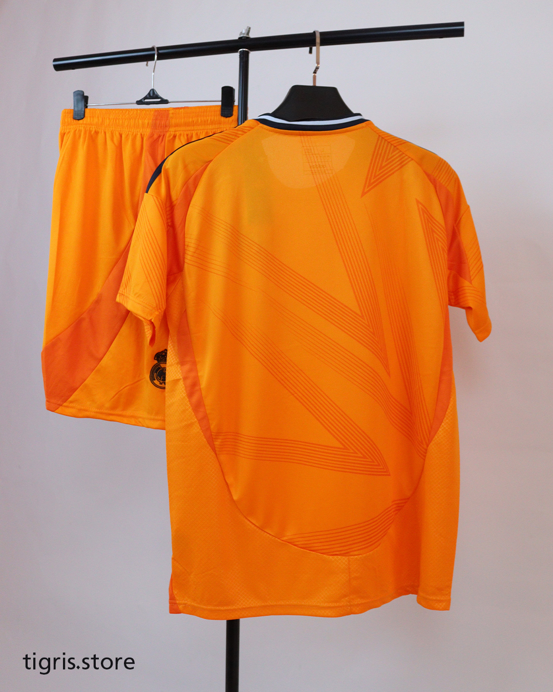 طقم ريال مدريد البرتقالي نسخة مشجع موسم 24/25 كامل مع الشورت صناعة تايلندية