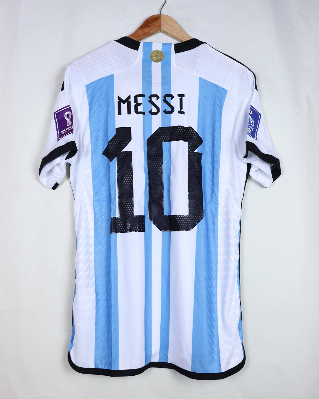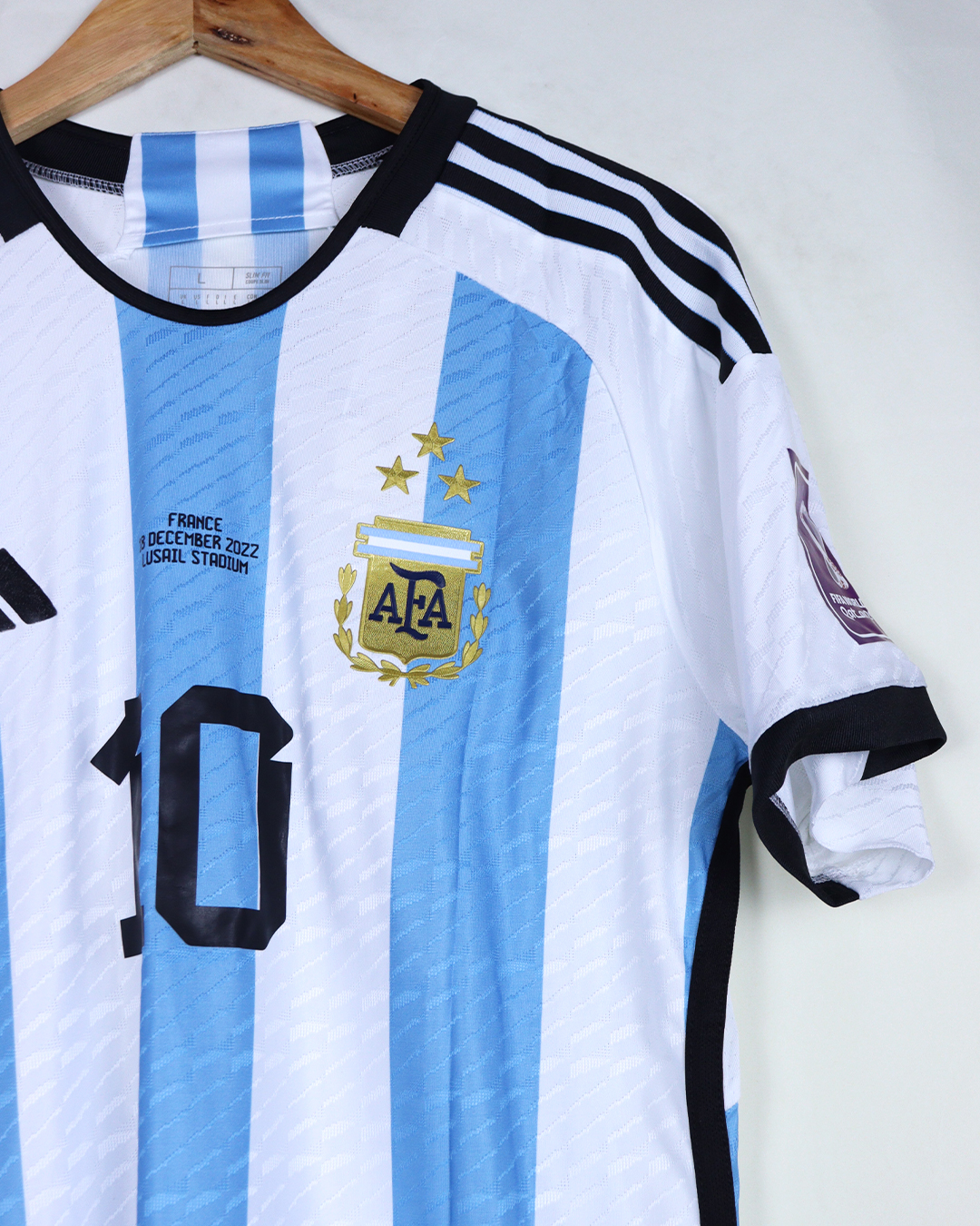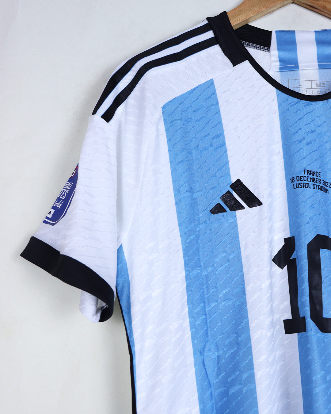 نسخة لاعب الأرجنتين كأس العالم 2022 نسخة النهائي باسم ميسي كامل الباجات فقط تيشرت صناعة تايلندية