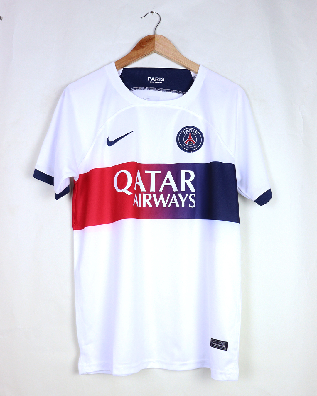 طقم نادي باريس سان جيرمان الأبيض موسم 23/24 نسخة مشجع كامل مع الشورت صناعة تايلندية