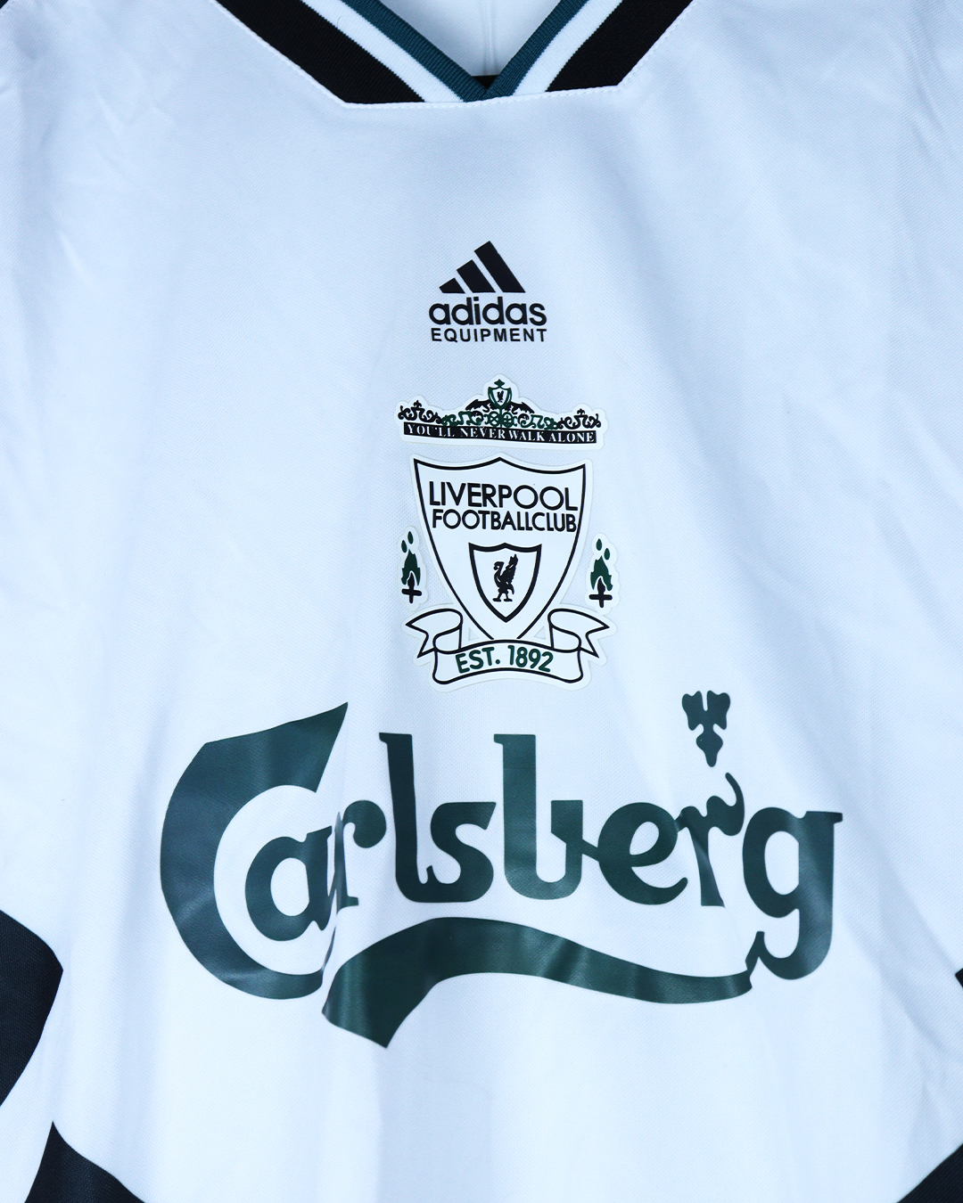 تيشرت نادي ليفربول الأبيض مواسم 93/95 فقط تيشرت صناعة تايلندية شعار ملصق خاص