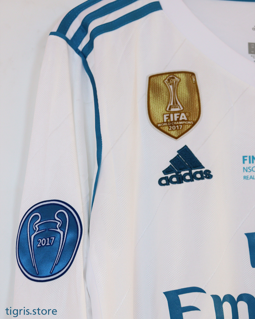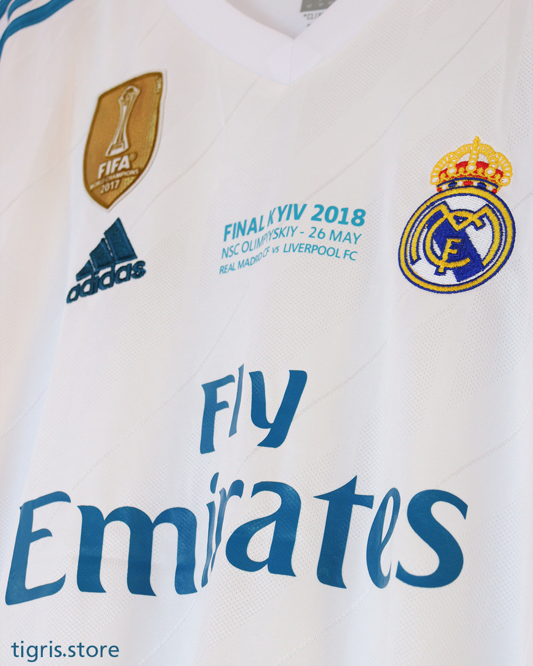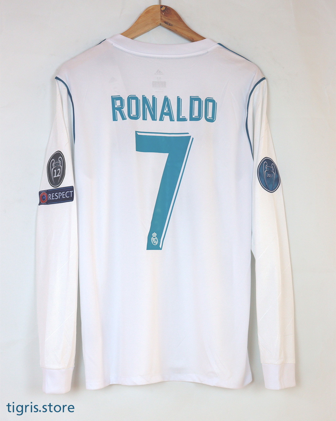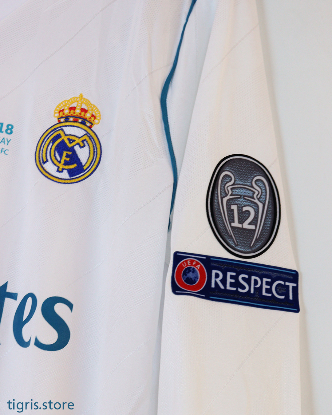 تيشرت نادي ريال مدريد موسم 2018 نسخة نهائي دوري الأبطال باسم رونالدو كامل الباجات ردن كامل صناعة تايلندية فقط تيشرت