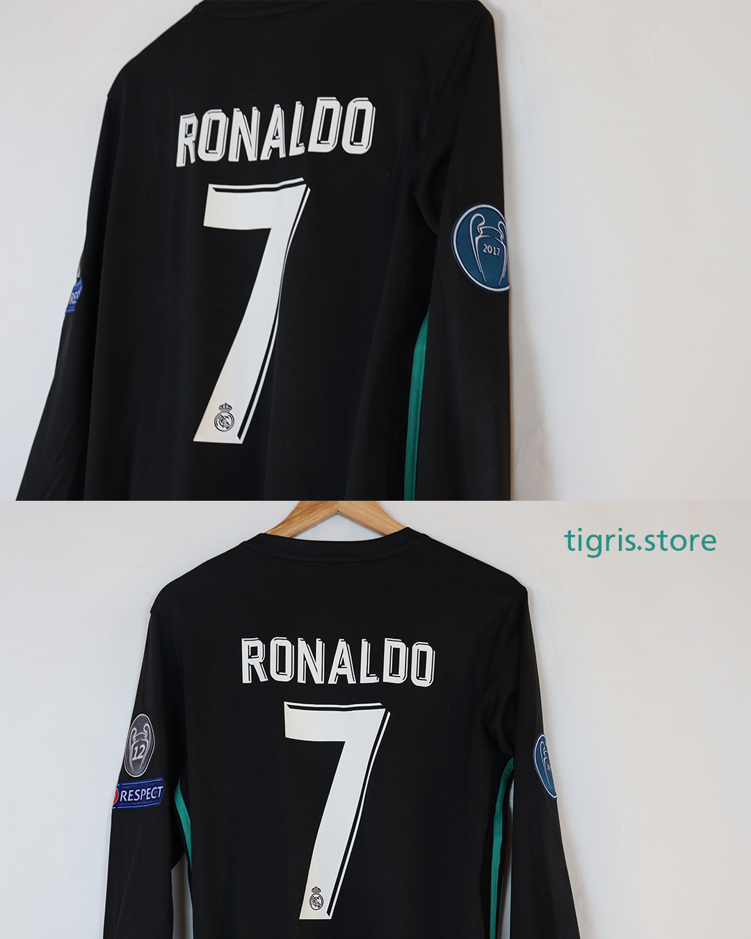 تيشرت نادي ريال مدريد الاحتياط موسم 2018 نسخة دوري أبطال أوروبا ردن كامل باسم رونالدو مع جميع باجات دوري الأبطال صناعة تايلندية فقط تيشرت