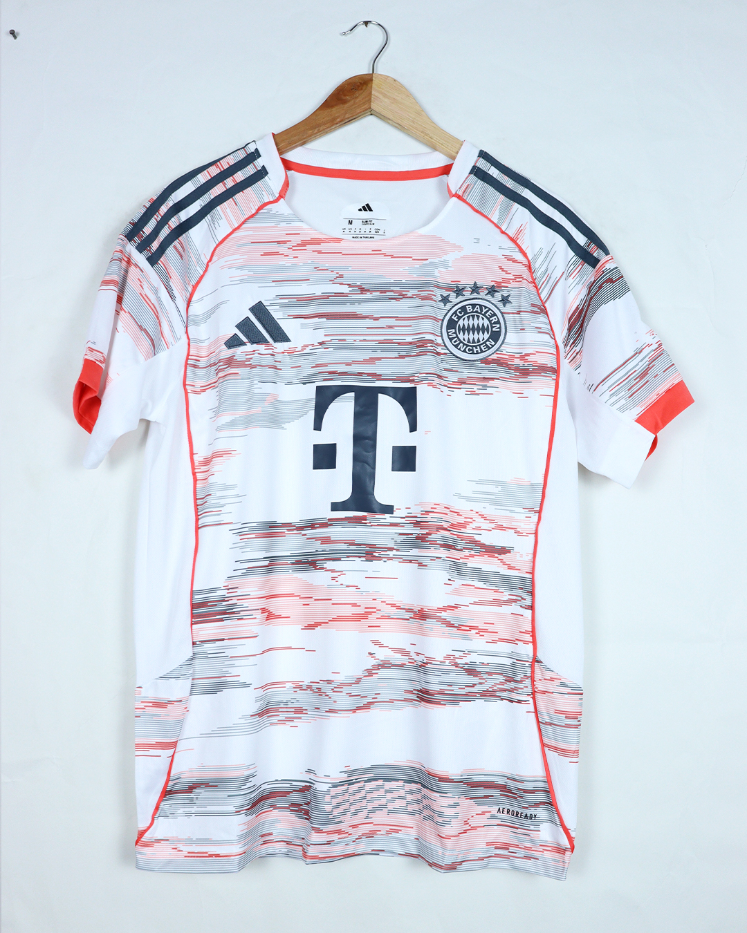 طقم بايرن ميونخ الأبيض الاحتياط لموسم 25/26 نشخة مشجع شعارات مطرزة كامل مع الشورت صناعة تايلندية