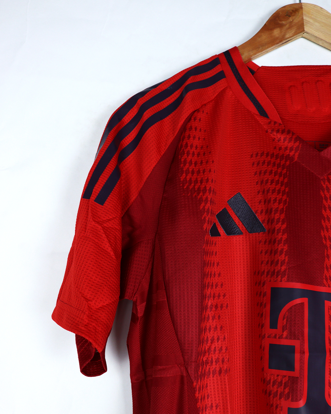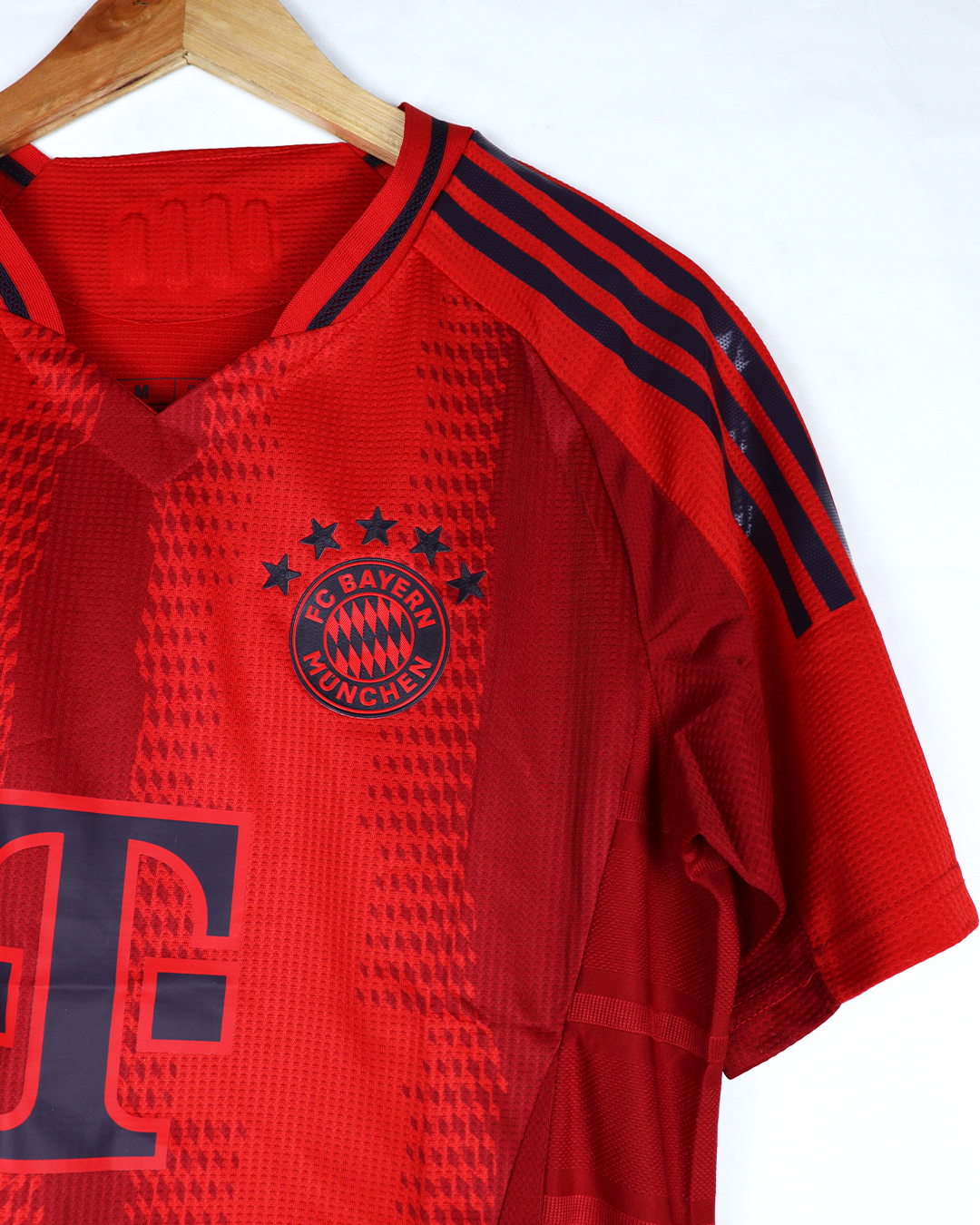 تيشرت نادي بايرن ميونخ الأساسي باللون الأحمر موسم 24/25 شعار جلاتين فقط تيشرت صناعة تايلندية