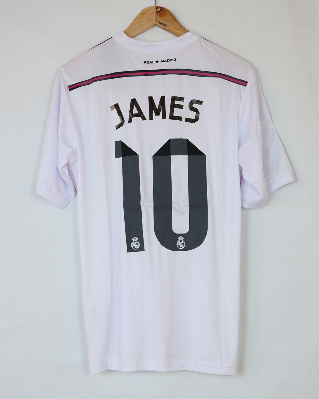 تيشرت نادي ريال مدريد الأبيض موسم 2015 باسم خاميس رودريغيز فقط تيشرت صناعة تايلندية يحتوي على اسم وباجات الليغا