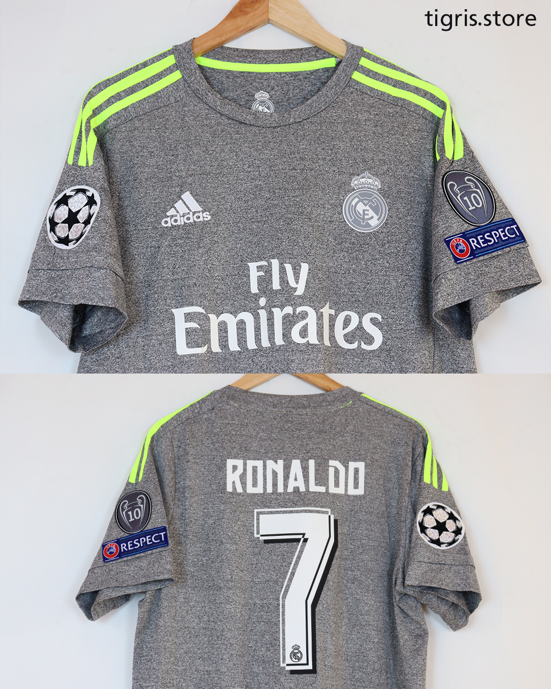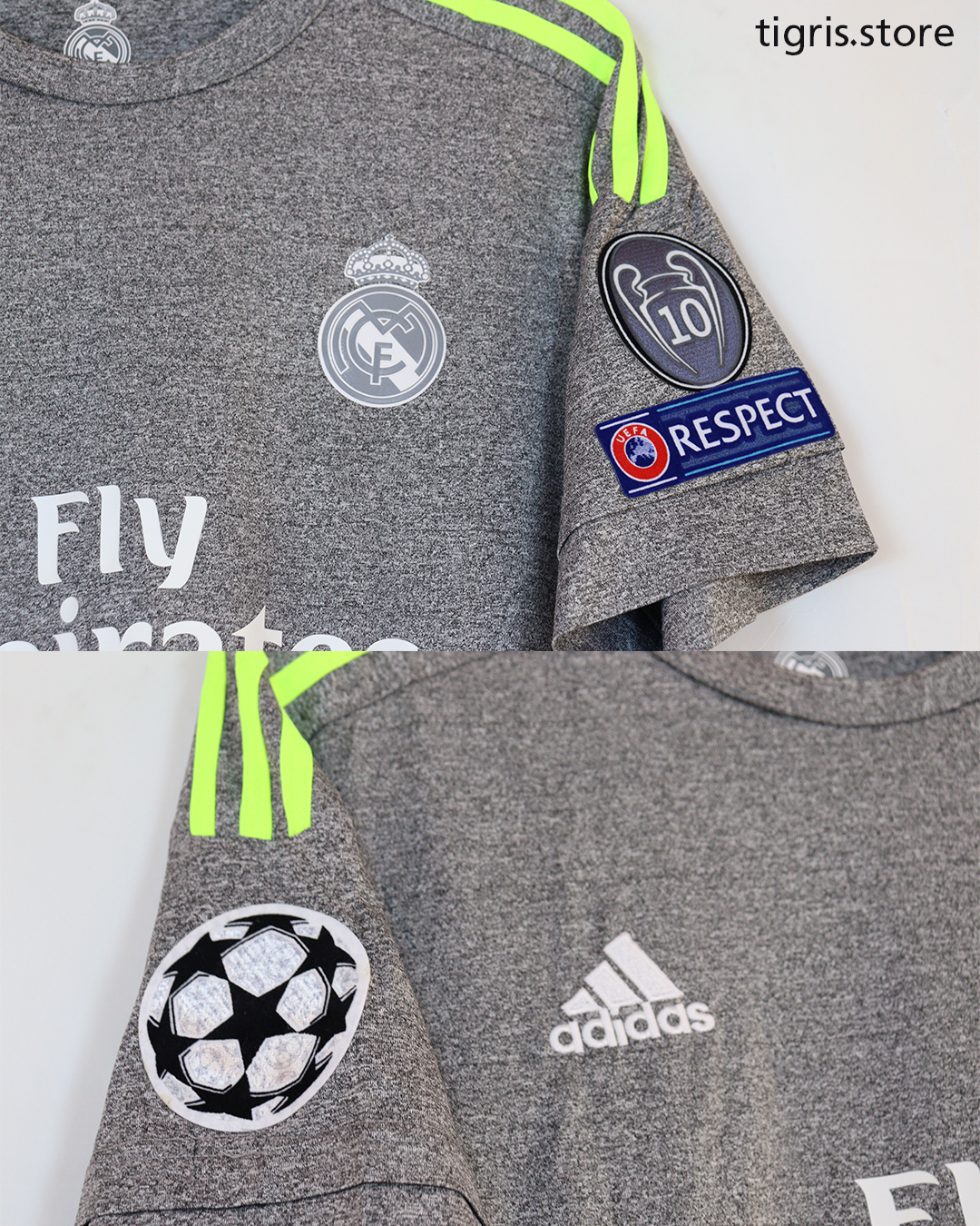 تيشرت نادي ريال مدريد الرصاصي موسم 2016 شعارات دوري الأبطال شعار جلاتيني صناعة تايلندية فقط تيشرت