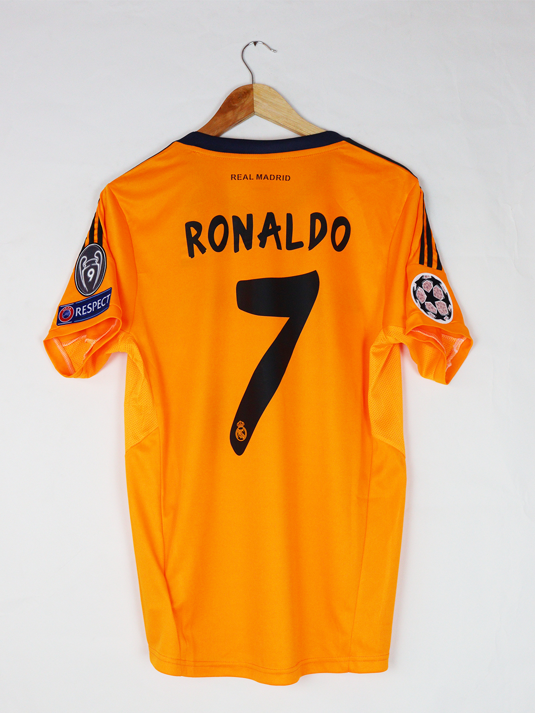 تيشرت نادي ريال مدريد البرتقالي موسم 2014 نسخة دوري أبطال أوروبا باسم رونالدو فقط تيشرت صناعة تايلندية