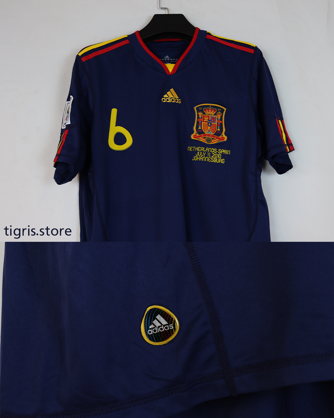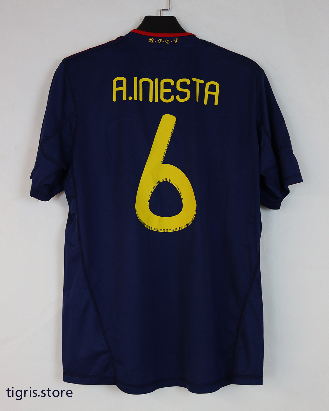 تيشرت المنتخب الاسباني نسخة نهائي كأس العالم 2010 باسم الرسام انييستا يحتوي على باجات النهائي صناعة تايلنديىة فقط تيشرت