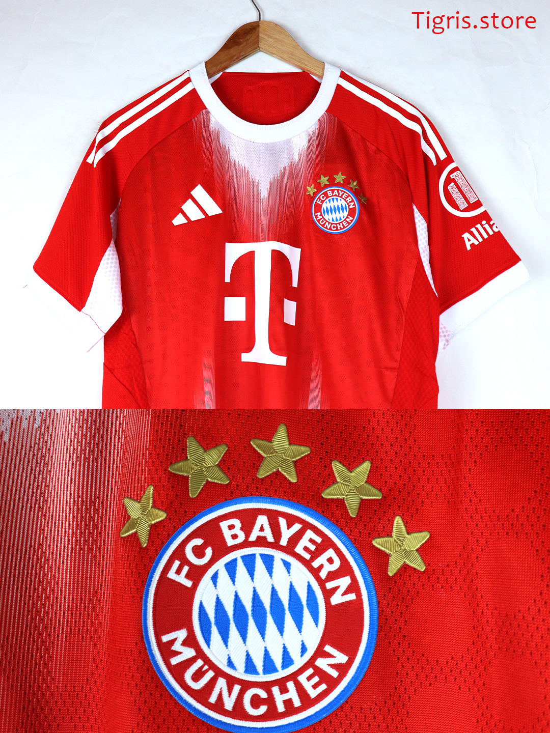 نسخة لاعب تيشرت بايرن ميونخ الأساسي 25/26 شعار جلاتيني صناعة تايلندية فقط تيشرت