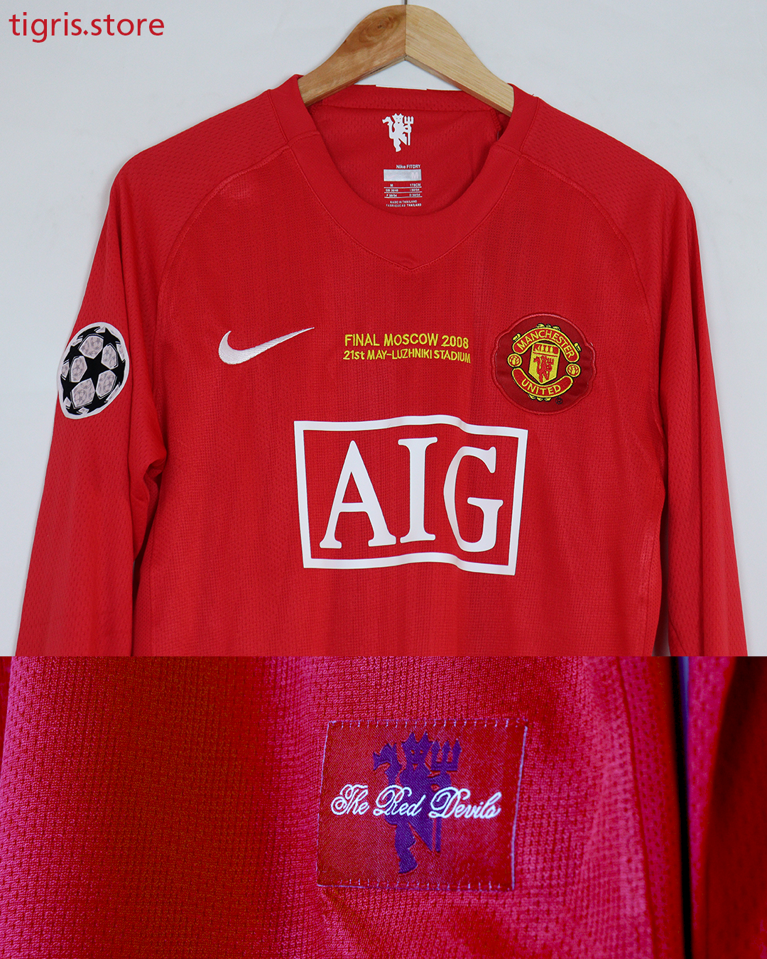 تيشرت نادي مانشستر يونايتد الأساسي 2008 كم طويل (ردن كامل) فقط تيشرت نسخة دوري الأبطال صناعة تايلندية