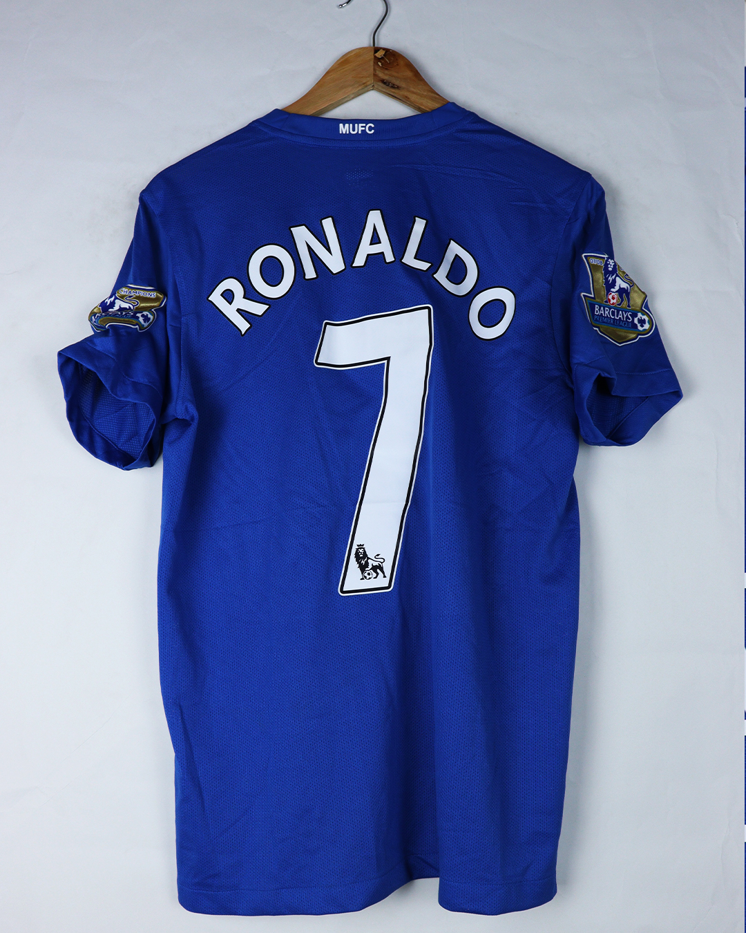 تيشرت نادي مانشستر يونايتد الأزرق موسم 2008 باسم رونالدو نسخة الدوري الأنكليزي فقط تيشرت صناعة تايلندية