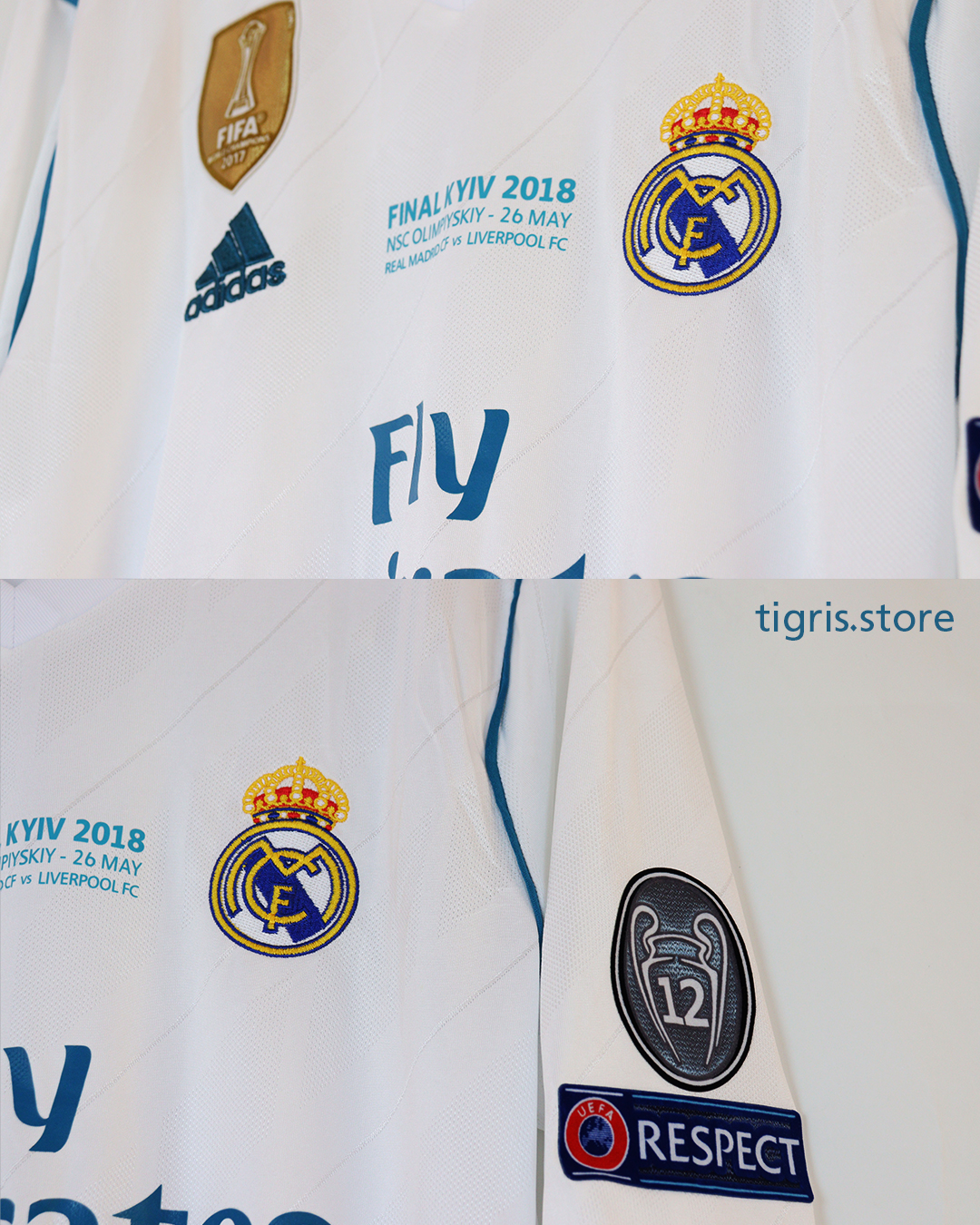 تيشرت نادي ريال مدريد موسم 2018 نسخة نهائي دوري الأبطال باسم رونالدو كامل الباجات ردن كامل صناعة تايلندية فقط تيشرت