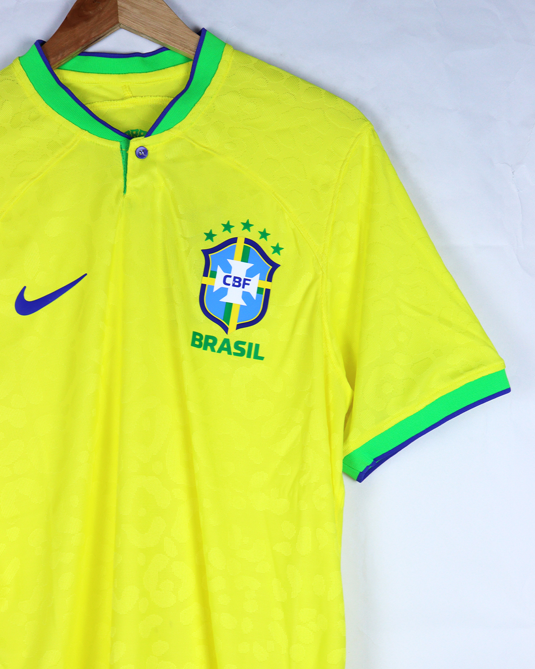 تيشرت المنتخب البرازيلي الأساسي لكأس العالم 2022 نسخة لاعب شعار جلاتيني صناعة تايلندية فقط تيشرت بدون شورت