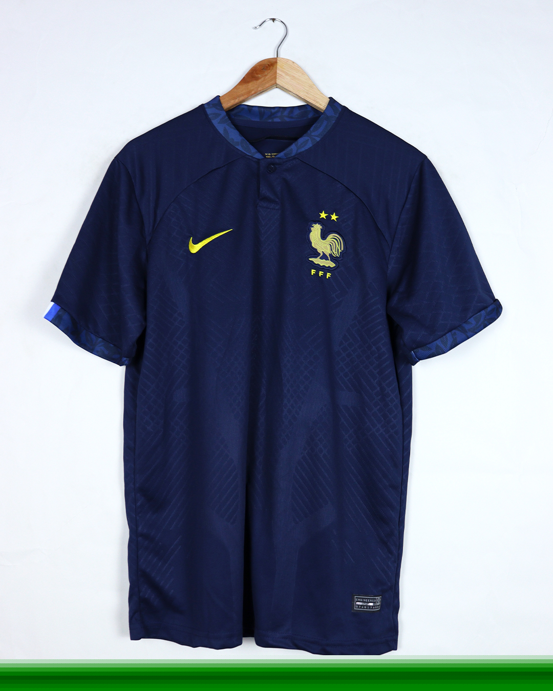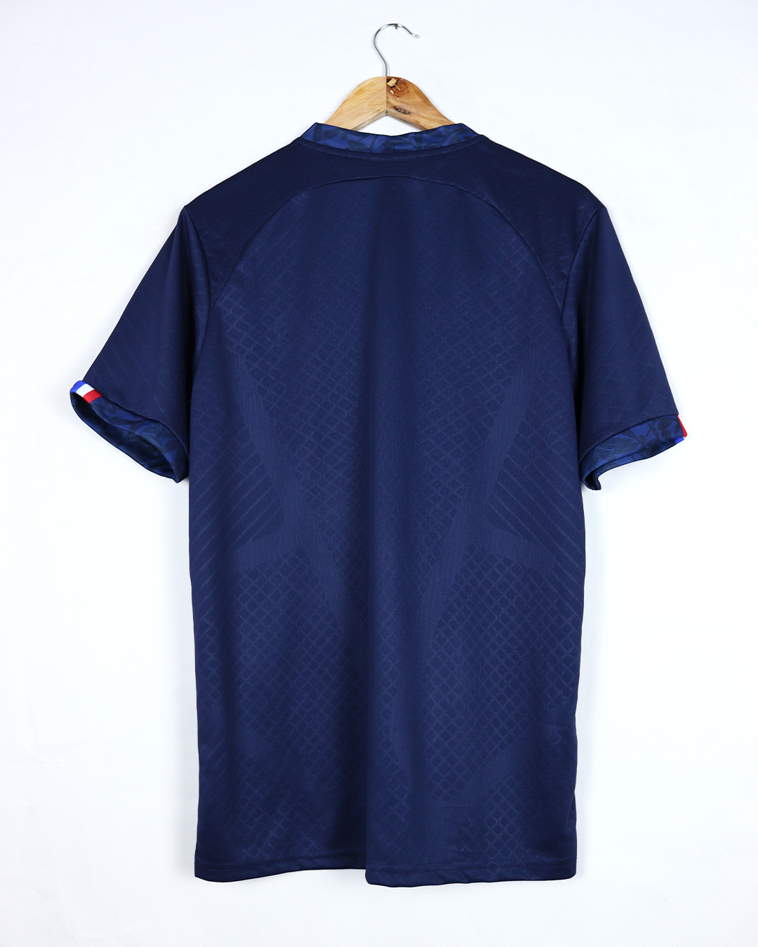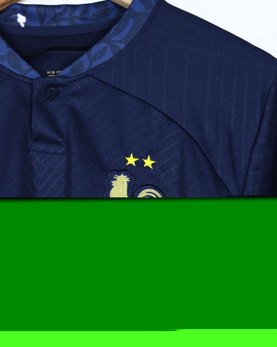 طقم المنتخب الفرنسي الأساسي كأس العالم 2022 نسخة مشجع كامل مع الشورت صناعة تايلندية شعار مطرز