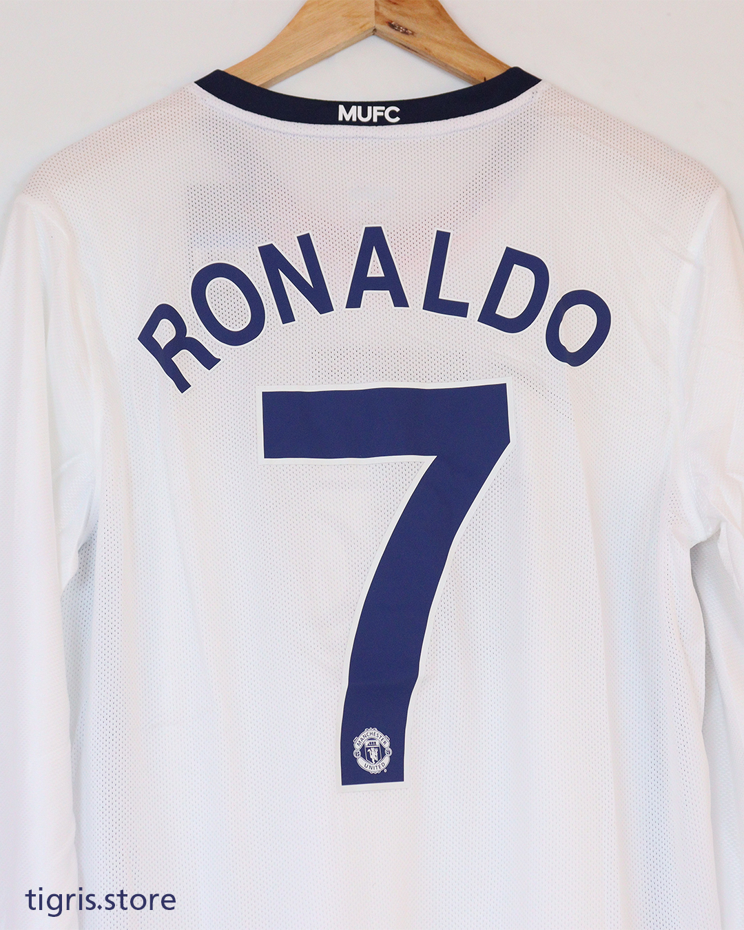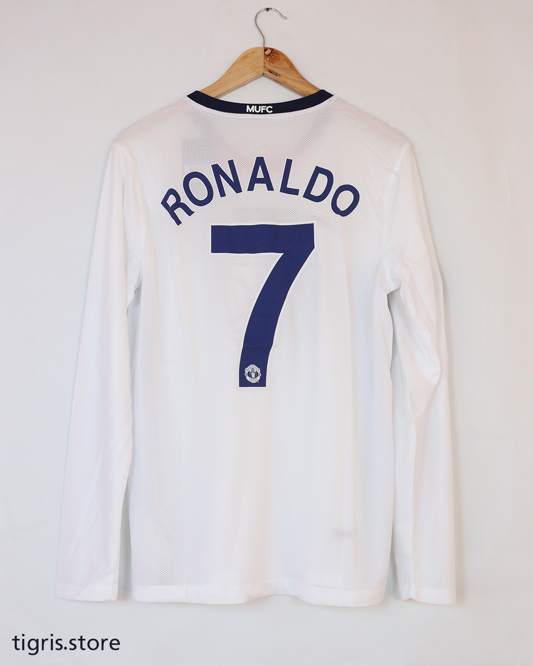 تيشرت نادي مانشستر يونايتد نهائي دوري أبطال أوروبا 2009 كم طويل فقط تيشرت بدون شورت صناعة تايلندية باسم رونالدو وشعارات النهائي