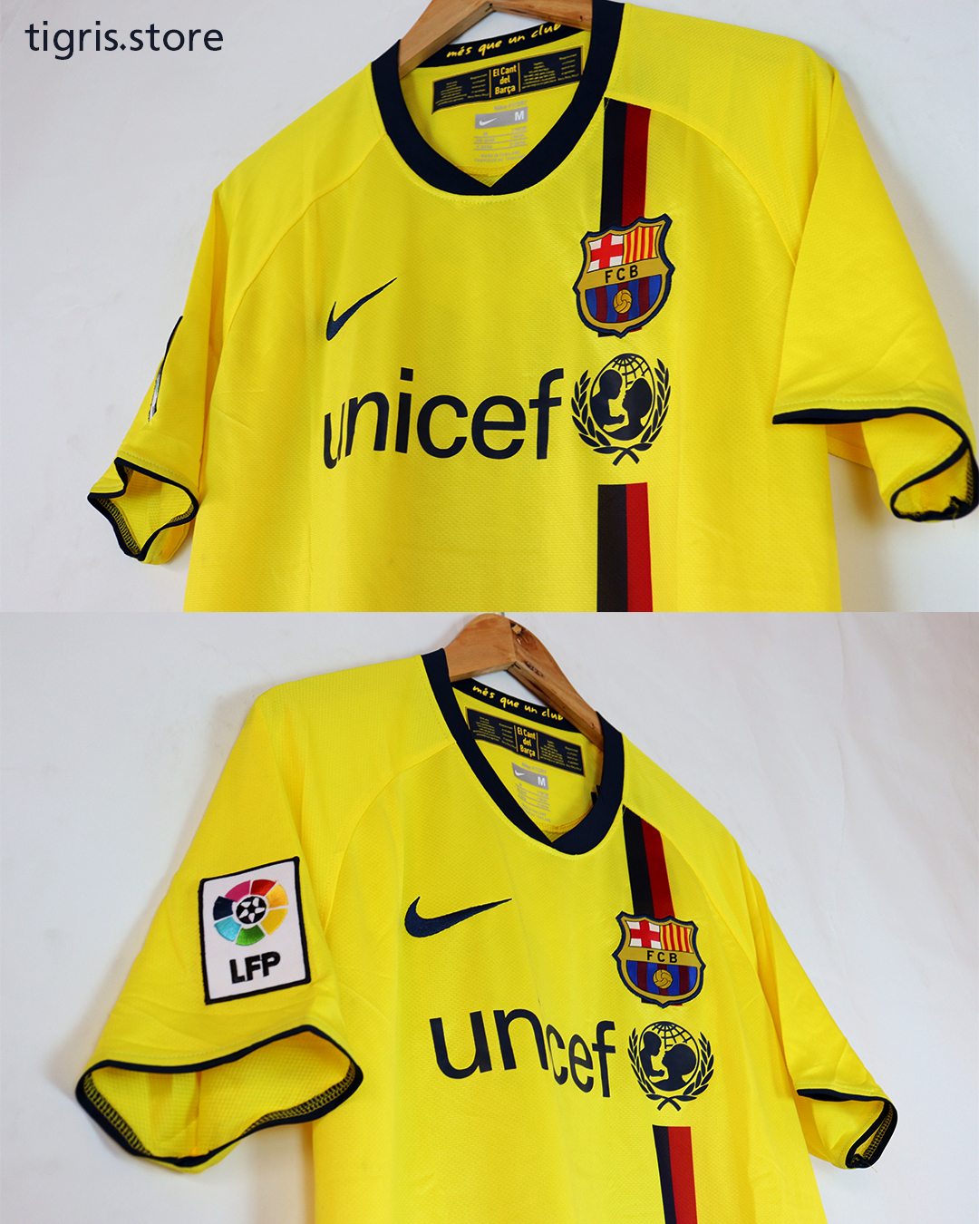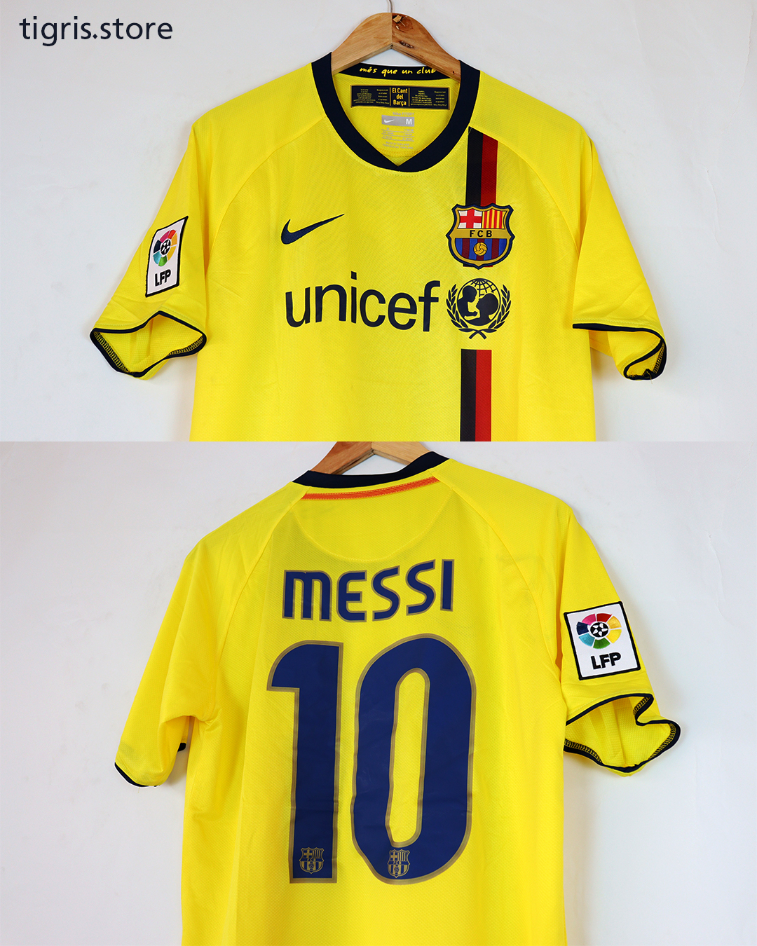 تيشرت نادي برشلونة 2009 الأصفر باج الليجا بأسم الأسطورة ليو ميسي صناعة تايلندية فقط تيشرت