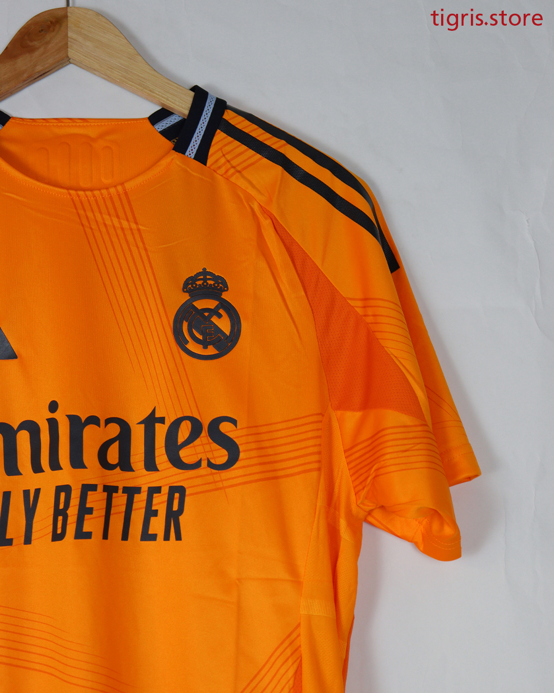 تيشرت نادي ريال مدريد نسخة لاعب موسم 24/25 البرتقالي , شعار جلاتين فقط تيشرت صناعة تايلندية