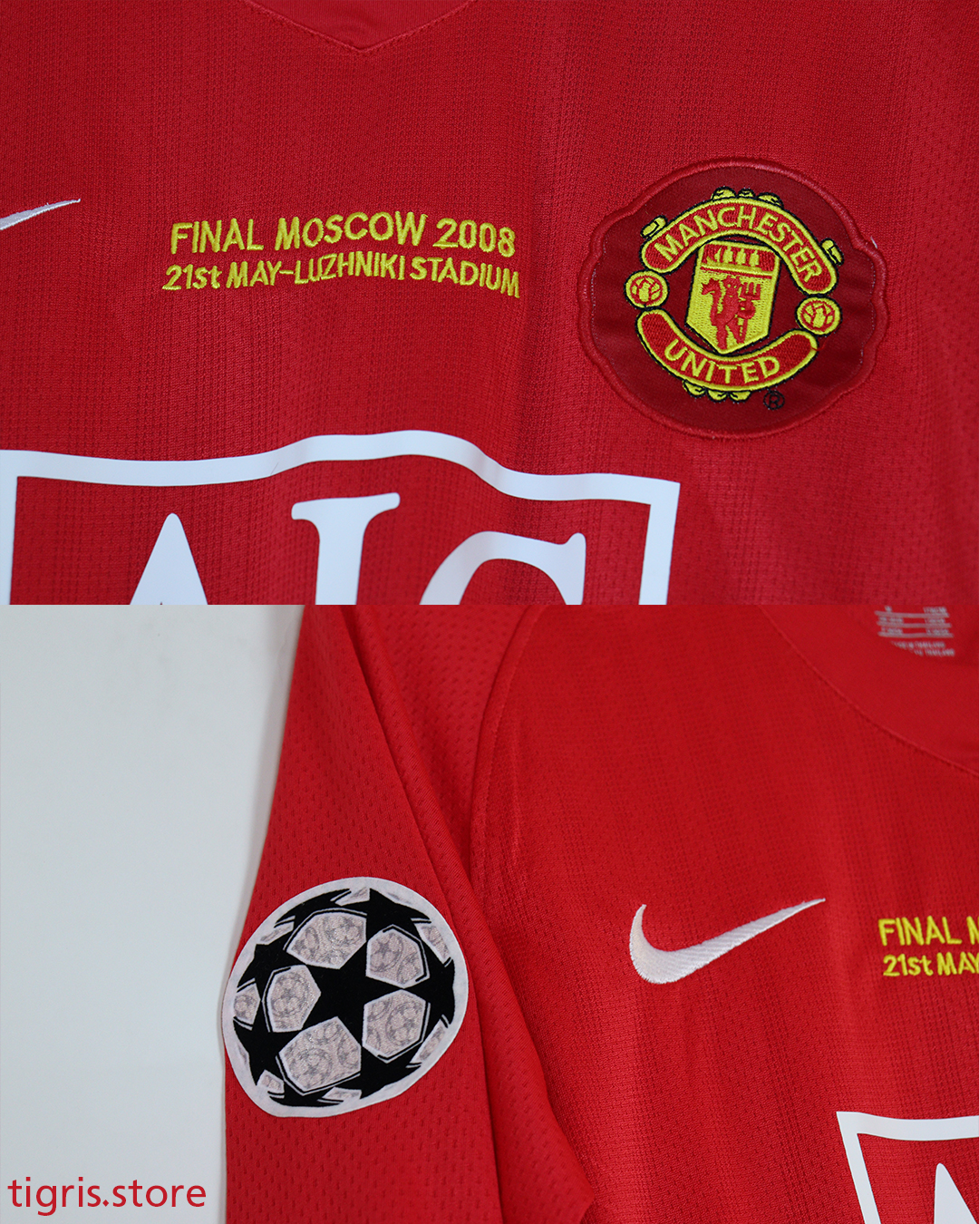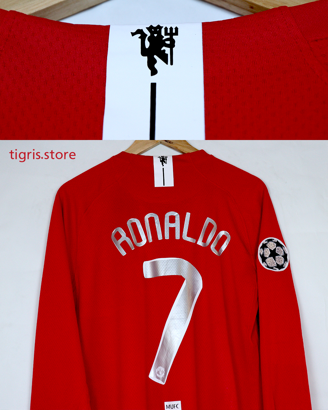تيشرت نادي مانشستر يونايتد الأساسي 2008 كم طويل (ردن كامل) فقط تيشرت نسخة دوري الأبطال صناعة تايلندية